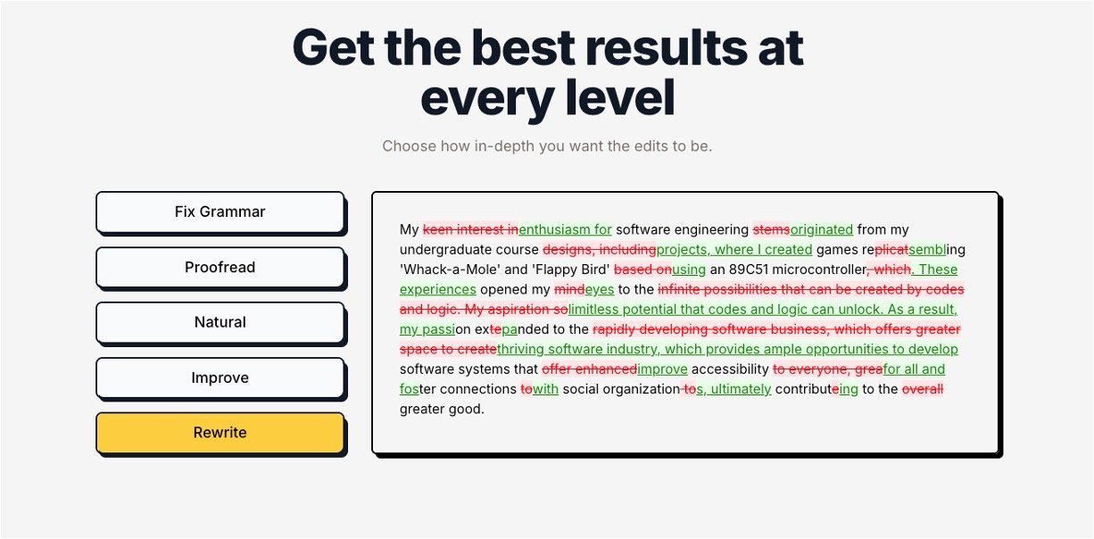 Grammar and Spell Check: Automatically detects and fixes errors with the option to undo changes.