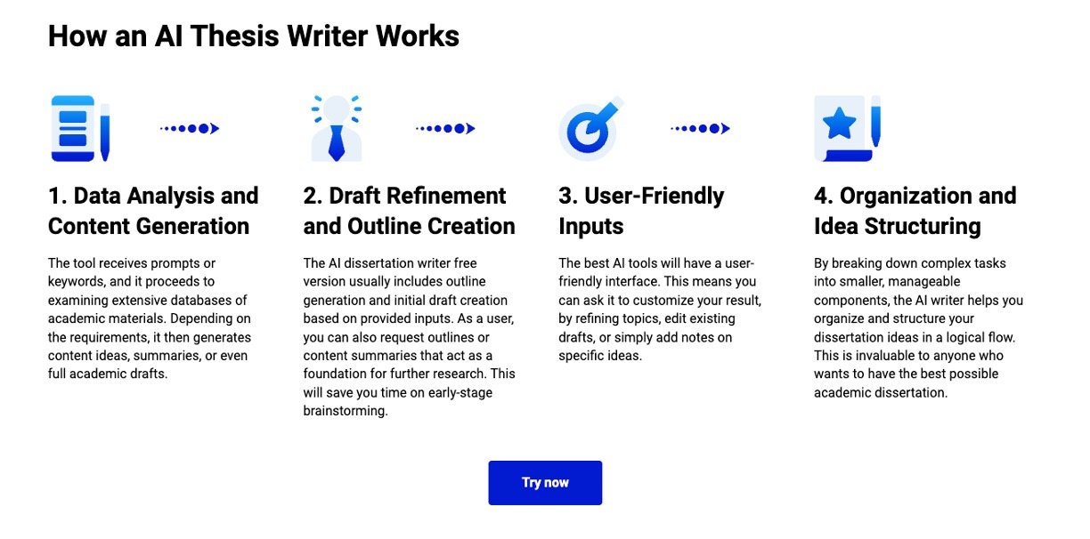 • Dissertation Structuring Support: Breaks down complex tasks into manageable parts for better idea flow and logical sequencing.